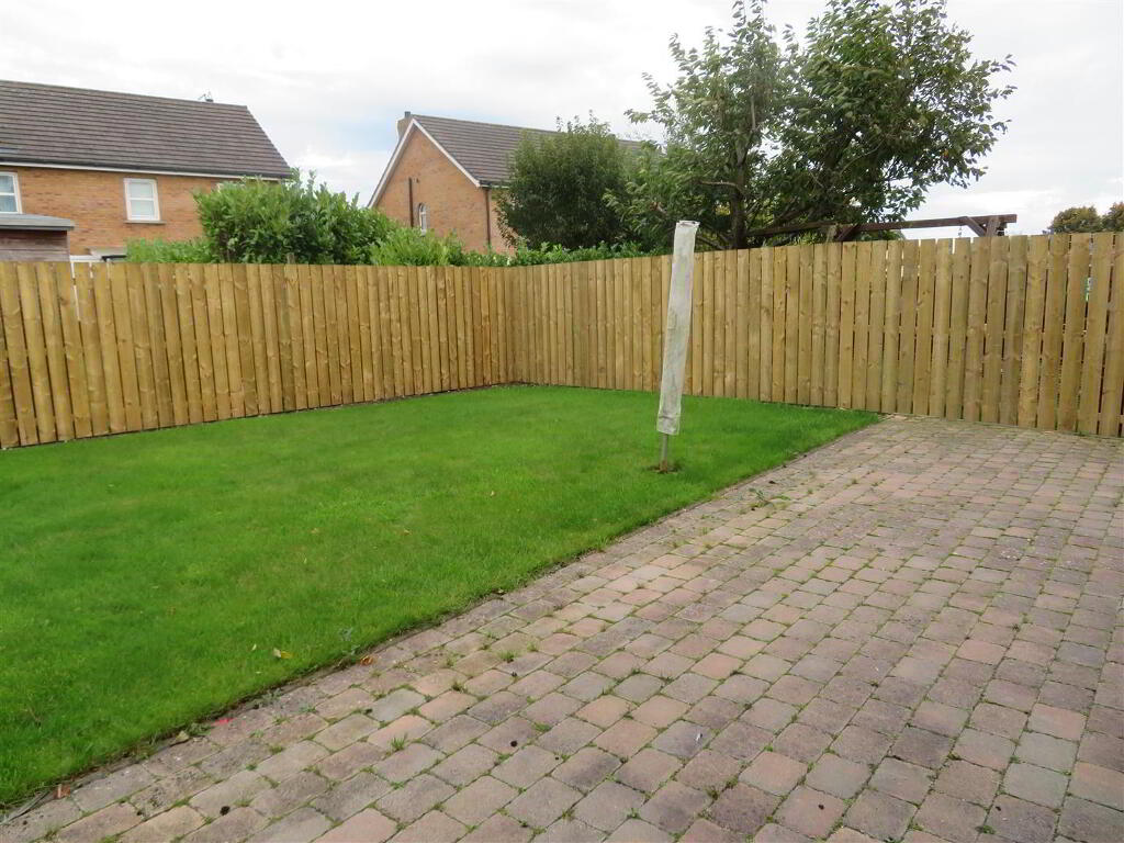Spacious garden laid in lawn with brick paved patio area. Pebbled driveway.