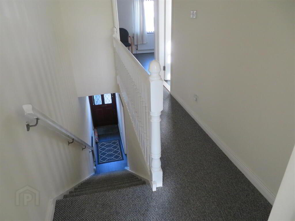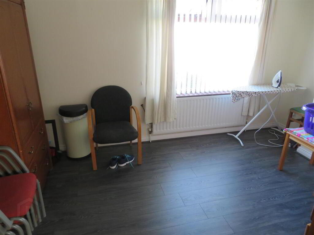 Generous reception room with open fire, laminate flooring and built in hot press under stairs.