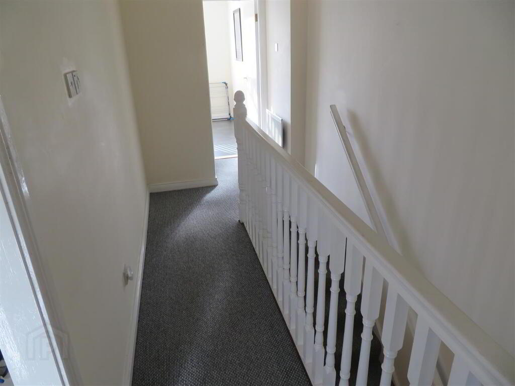 Carpet flooring on stairs and landing, access to roof space.