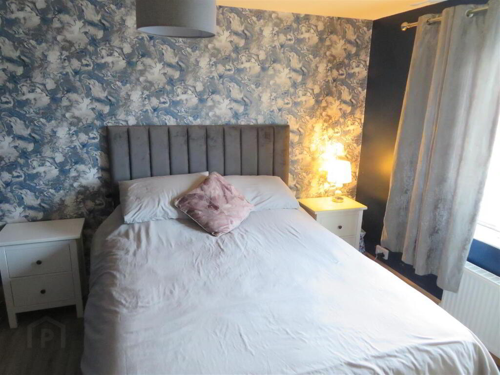 Front aspect double bedroom with built in wardrobe and laminate flooring.