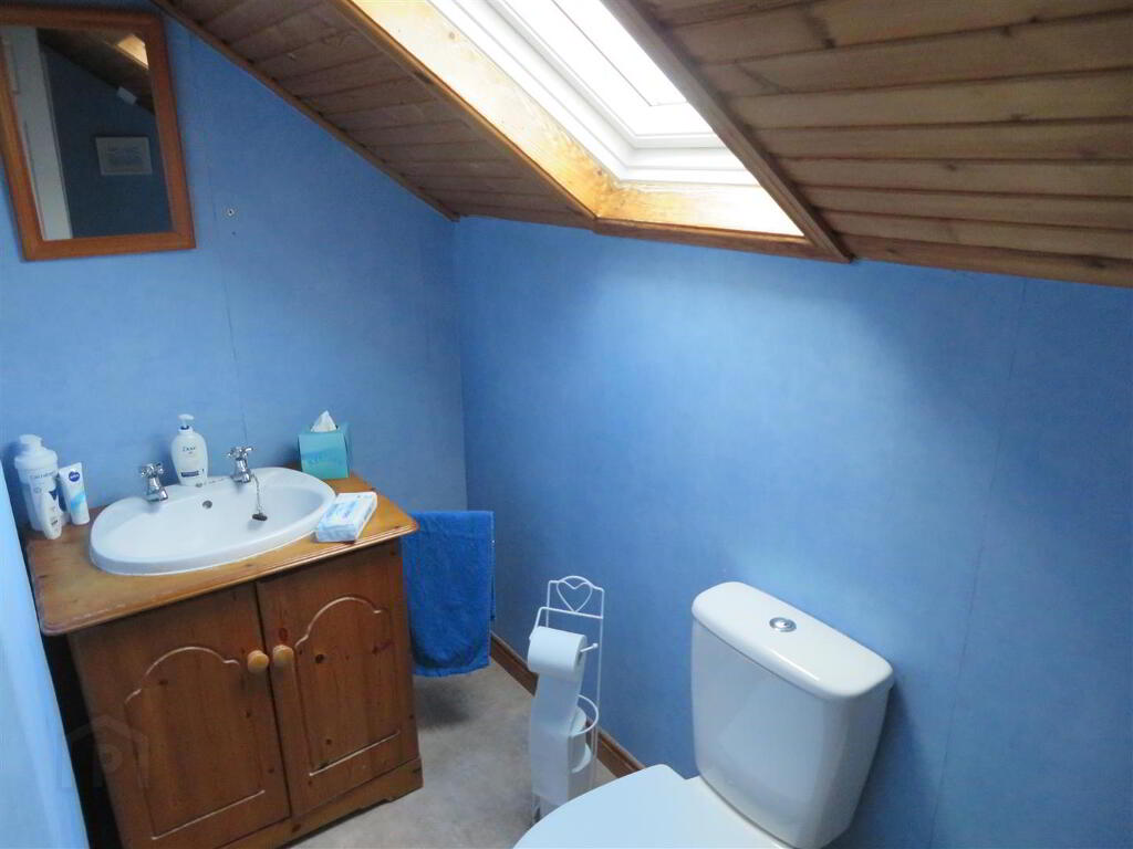Electric shower, wash hand basin with vanity and WC, with velux window.