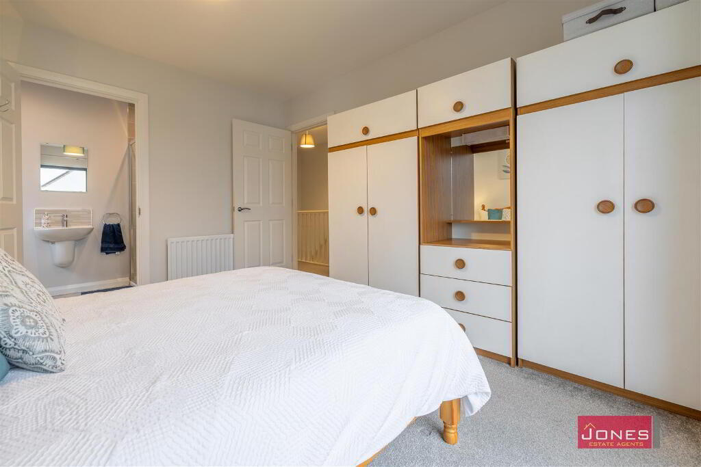 Rear aspect master bedroom with carpet flooring and ensuite.