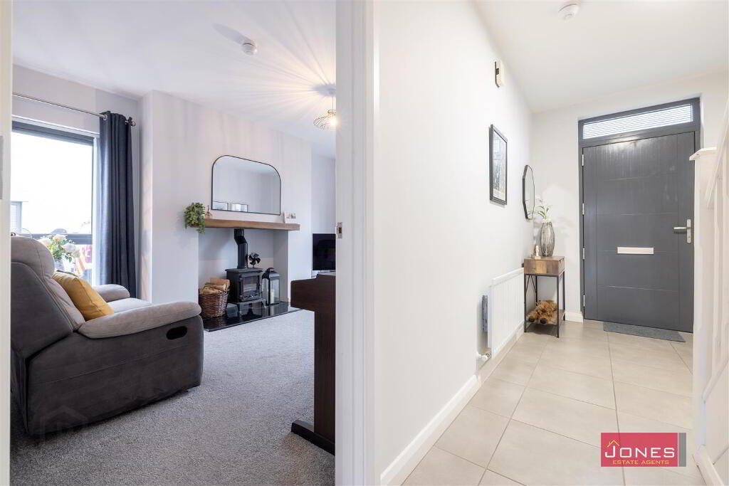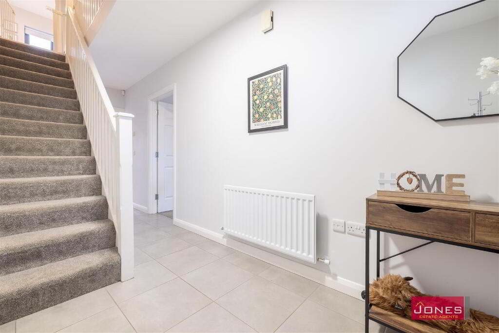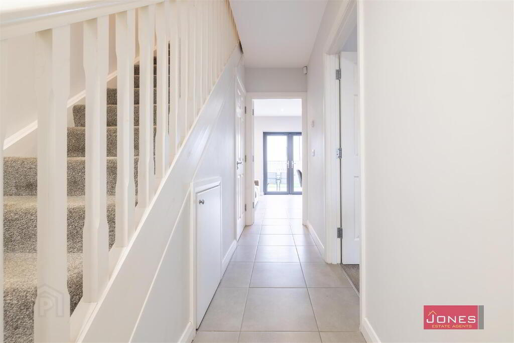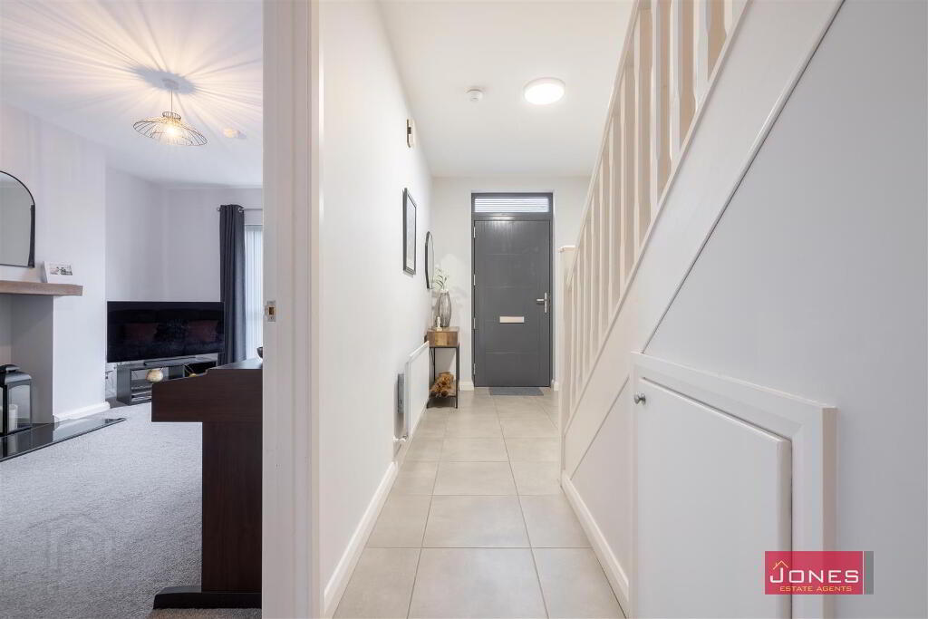 Accessed via composite front door, tiled flooring and built in storage under stairs.