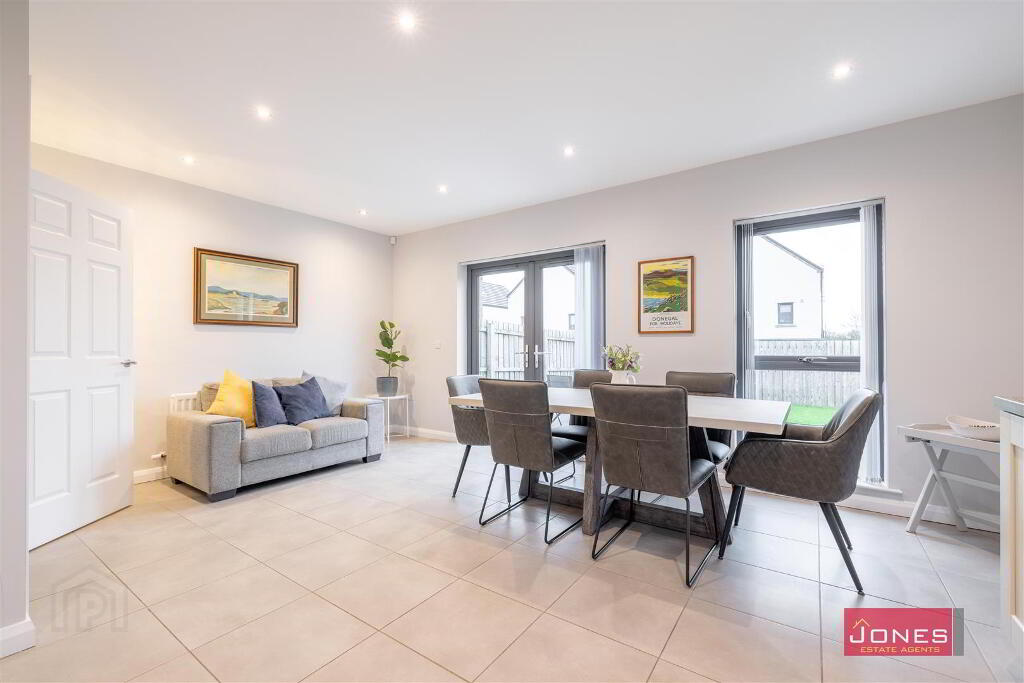 This bright and contemporary three-bedroom semi-detached home is ideally positioned within a popular residential development just off the highly sought after Gilford Road in Lurgan. Finished to a modern standard throughout, the property is flooded with natural light thanks to impressive floor to ceiling windows that create a stylish and airy living environment. The modern kitchen is fully fitted with a range of integrated appliances, including washing machine, dishwasher and fridge freezer, offering both practicality and contemporary design. Upstairs, the home offers three well proportioned bedrooms, including a master bedroom with a private ensuite, alongside a modern family bathroom. Completing the accommodation is the ever-important ground floor WC. Combining modern living with a highly convenient and desirable location, this attractive home is ideal for families and first time buyers.