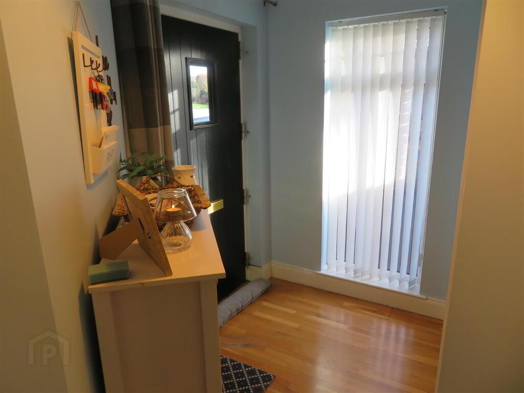 Accessed via composite front door, two built in storage cupboards and solid wood flooring.