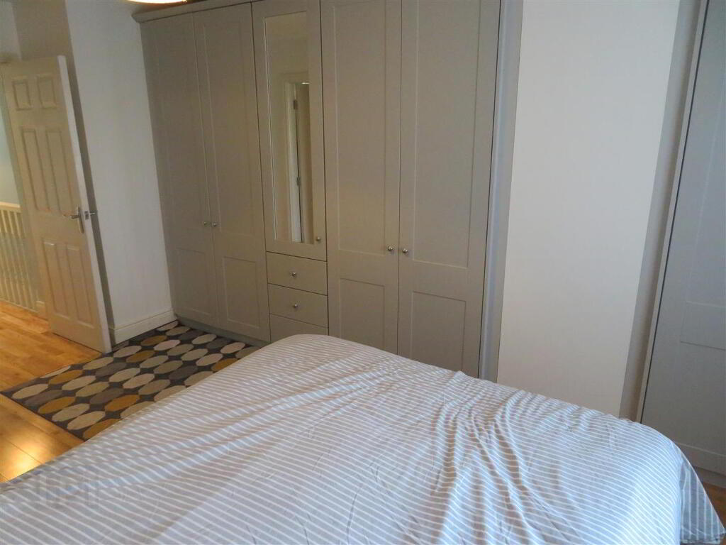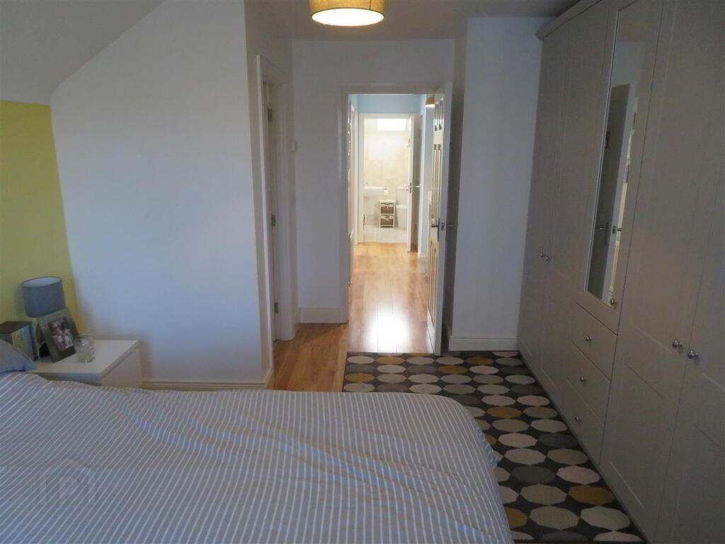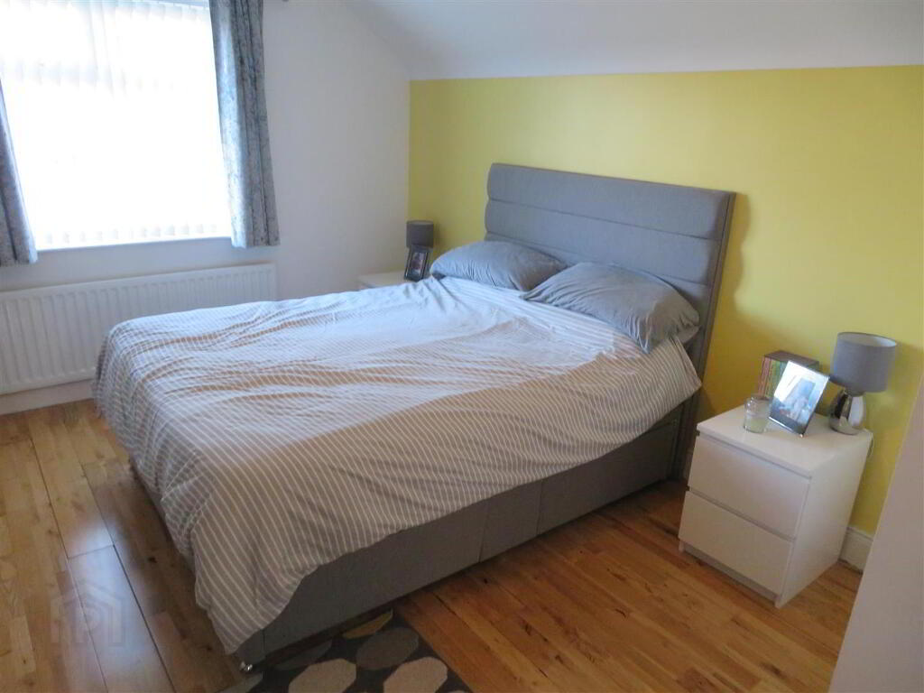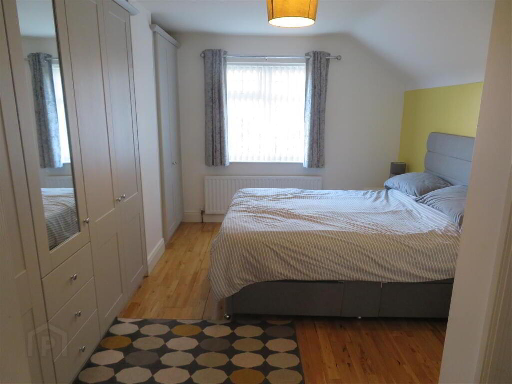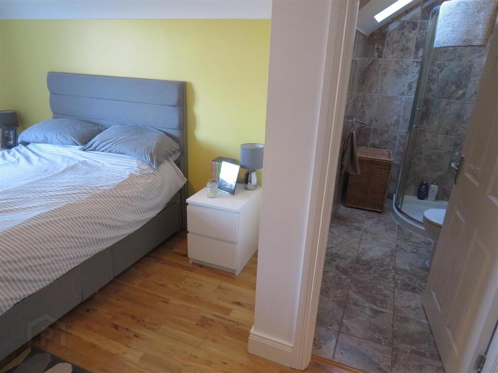 Carpet flooring on stairs, solid wood flooring on landing, built in hot press and access to partially floored roof space with slingsby ladder.