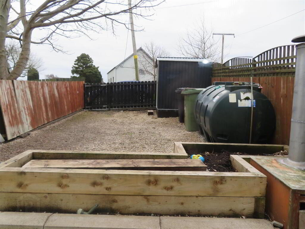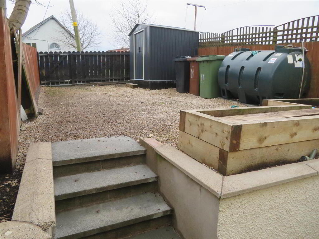 Enclosed front garden, laid in lawn. Fully enclosed rear.