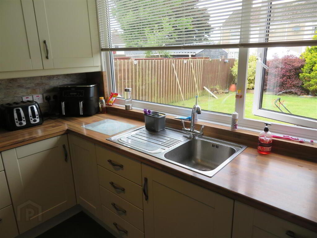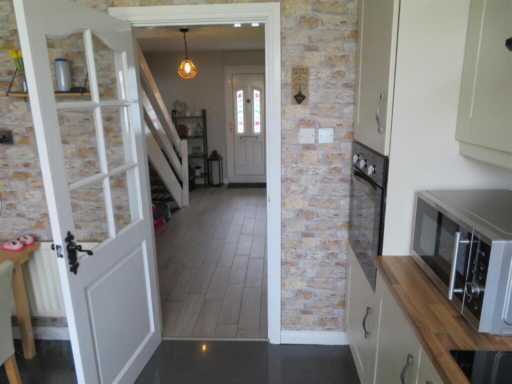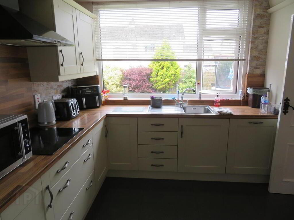Range of fitted cupboards, plumbed space for washing machine, space for fridge freezer, vinyl flooring, PVC back door to rear and access to integral garage.