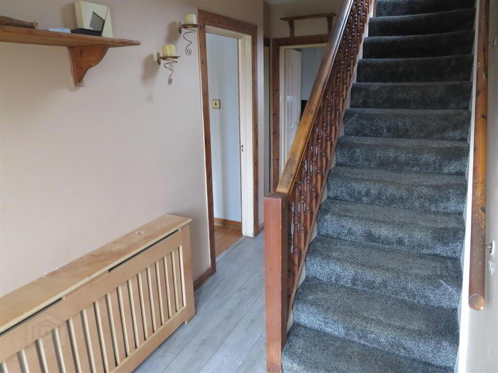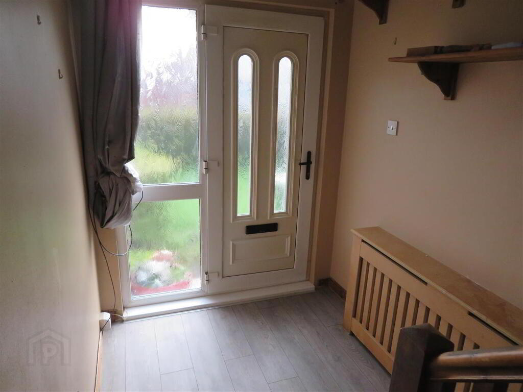 Accessed via PVC front with double glazed sidelight, built in storage under stairs and laminate flooring.